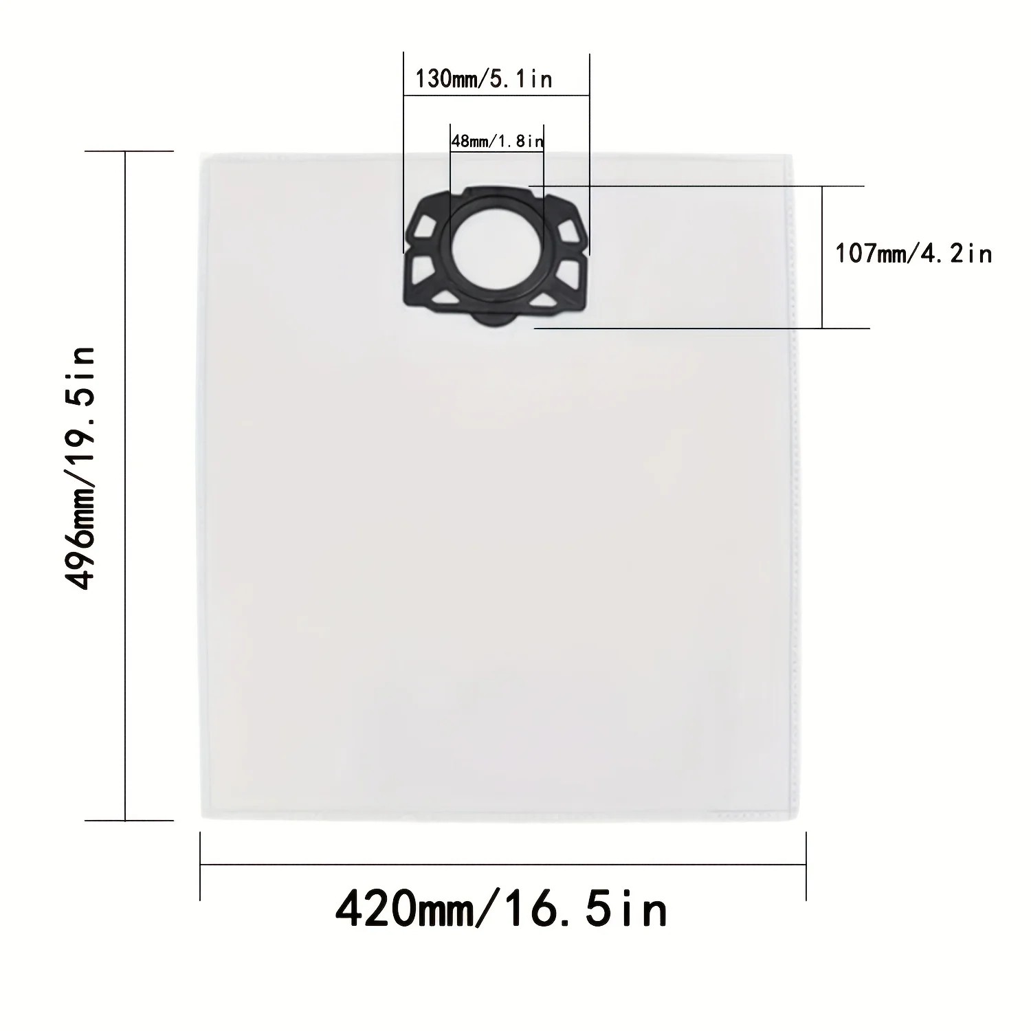 10 db Karcher WD4/WD5/WD6 és MV4/MV5/MV6 porszűrő készlet - Modell 2.863-006.0 Ez a készlet 10 db porszűrőt tartalmaz, amelyek kompatibilisek a Karcher márkájú porszívókkal, konkrétan a WD4, WD5, WD6, MV4, MV5 és MV6 modellekkel. A szűrők méretei 420 mm x 300 mm, és úgy vannak tervezve, hogy hatékonyan megfogják a port, szennyeződéseket és egyéb piszkot a porszívózás során. Ezek a szűrők kiváló minőségű anyagból készültek, amely tartós, mosható és hosszú élettartamot biztosít.