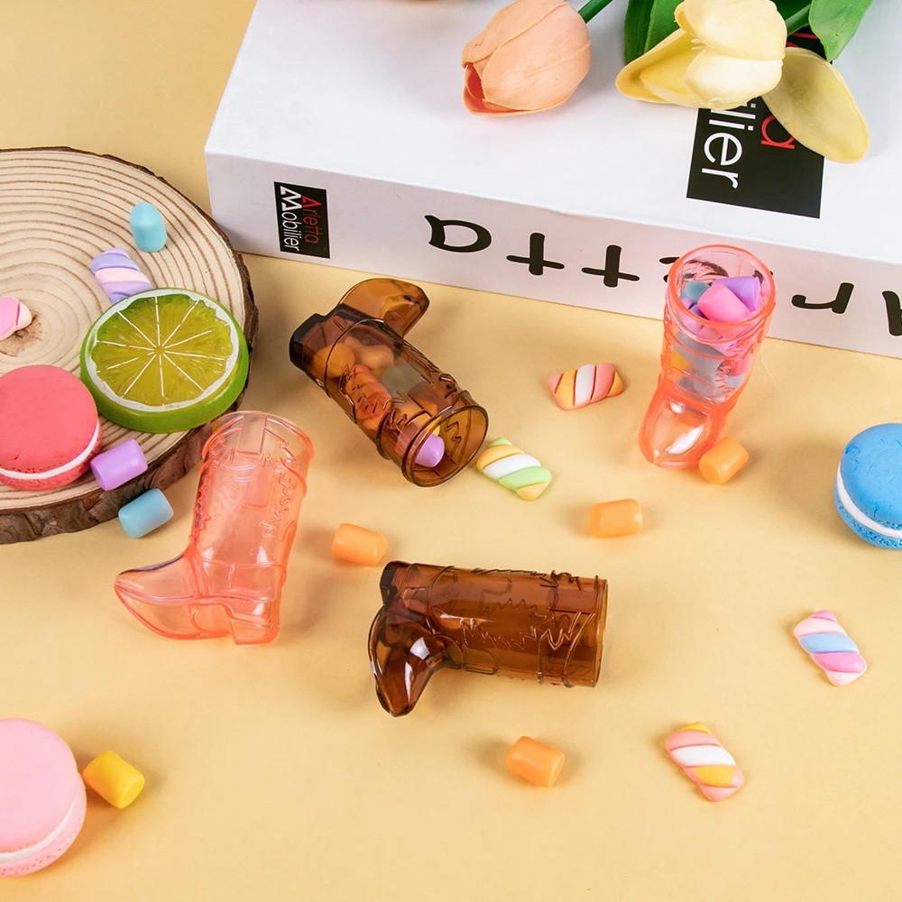 10 db-os kovbojcsizma formájú mini pohárkészlet 6,5 cm műanyag poharak a lánybúcsúra parti dekoráció