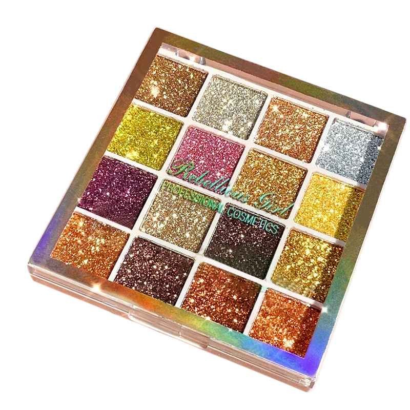 16 színű szemhéjpúder paletta Csillogó fény Glitter hatás Hosszan tartó, magas pigmentáltságú árnyékok Parti és esti smink