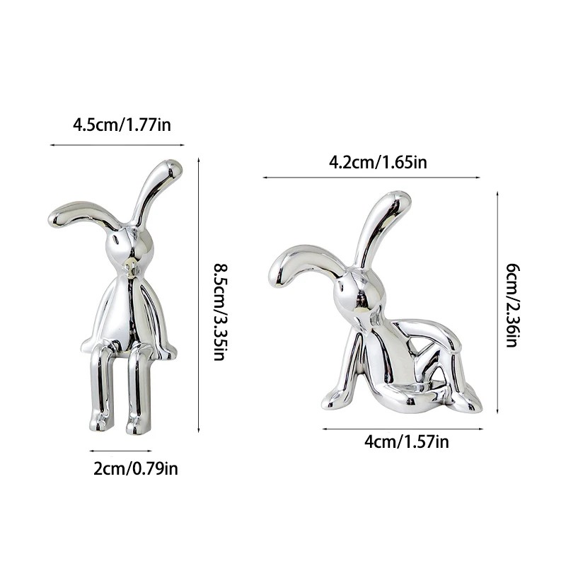 2 darab Galvanizált bevonatú ülő nyúl szobor 8,5 x 4,5 x 2 cm és 6 x 4 x 4,2 cm Műanyag dekorációs dísz polcra, bútorra, műszerfalra