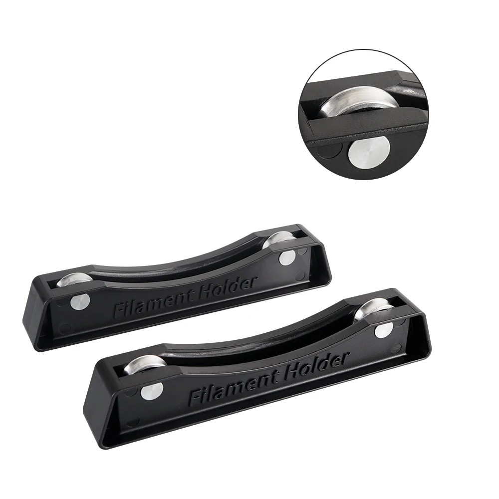 Ez a két darab filamenttekercs tartó stabil, sima és csendes anyagleadásra lett tervezve nyomtatás közben. Minden tartó mérete 165 × 30,6 × 23,9 mm, és fém golyókkal van felszerelve, amelyek biztosítják a sima működést akadás nélkül. A speciális ívelt profil biztonságosan rögzíti a tekercset a helyén, megakadályozva annak oldalirányú elmozdulását még magas nyomtatási sebességek mellett is. A tartó alján található csúszásgátló alátét biztosítja, hogy a tartó szilárdan álljon az asztalon, anélkül, hogy csavarokkal vagy bilincsekkel kellene rögzíteni.