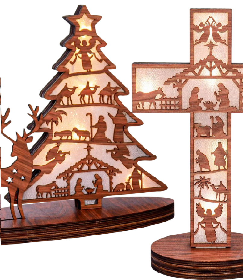 Főoldal Főoldal Otthon, háztartás Beltéri kiegészítők és dekorációk Karácsonyi dekorációk 3 db-os karácsonyfás fából készült világító dekoráció 27 x 19 x 2,5 cm Függő világító dísz lakásba téli dekoráció