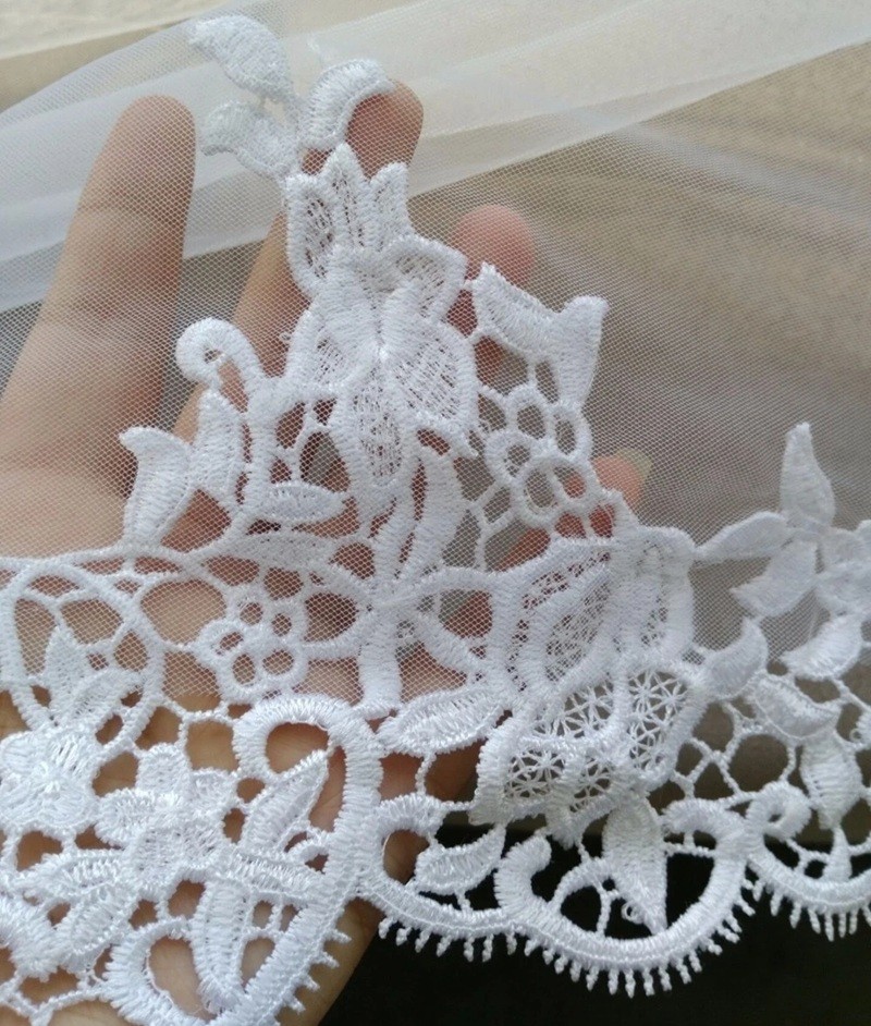 Ez a hosszú csipkés fátyol ideális választás tradicionális és modern esküvők számára. A könnyű anyag természetesen mozog, és gyönyörűen lebeg a ruha mellett. A csipkés részlet luxus karaktert ad a modellnek anélkül, hogy túlzsúfolt lenne. A fehér és ivory fehér közötti választás lehetővé teszi a tökéletes összehangolást a menyasszonyi ruha árnyalatával és az esküvő általános színkoncepciójával.