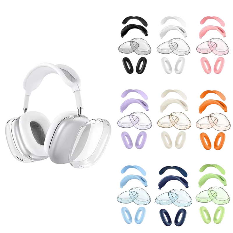 4v1 védőszett AirPods Max-hoz – fejkeret védelem, külső fülkagyló burkolatok, fülpárnák védelme és belső hálós párna, ütésálló anyag a maximális védelem érdekében
