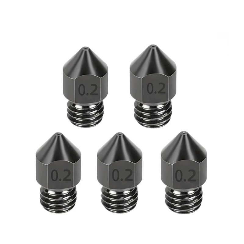 Ez a készlet finom fúvókákból készült, amelyeket olyan felhasználók számára terveztek, akik maximális pontosságot és tiszta részleteket szeretnének elérni nyomtatásaik során. A 0,2 mm átmérőjű nyílás lehetővé teszi a nagyon vékony rétegek nyomtatását, ami ideális a miniaturákhoz, bonyolult műszaki alkatrészekhez és dekoratív modellekhez. A fúvókák edzett acélból készültek, amely magas kopásállóságot biztosít még hosszú nyomtatás esetén is. Az M6 menetes kialakítás egyszerűsített telepítést és jó kompatibilitást biztosít számos elterjedt 3D nyomtatóval, amely 1,75 mm-es filamentet használ. Az öt darabos készlet elegendő tartalékot biztosít a hosszú nyomtatási időszakokhoz és a rendszeres karbantartáshoz.