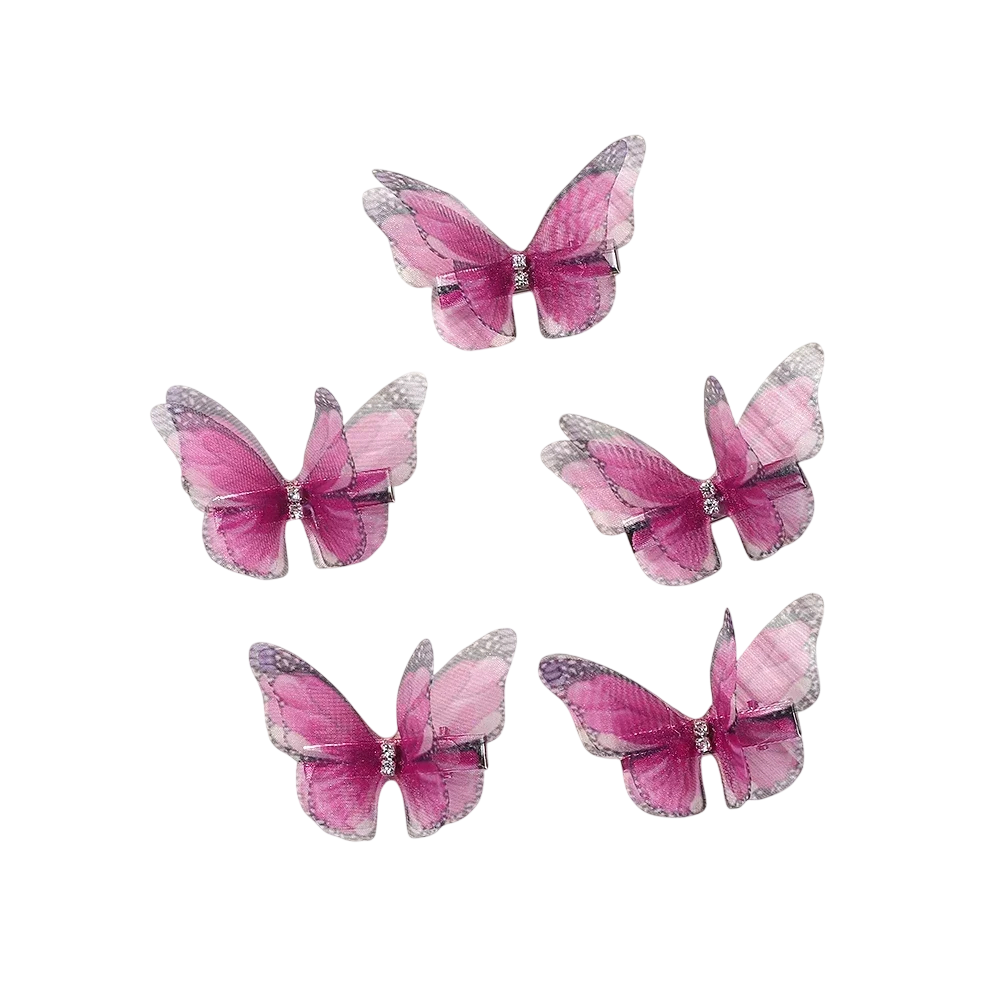 Elegáns pillangós hajcsat készlet finom és játékos részletet hoz minden frizurába. A hálós, két rétegű design könnyű és légies hatást kelt, amely természetes és stílusos. A pillangó forma romantikus megjelenést kölcsönöz a hajnak, és könnyen feldobja az egyszerű öltözetet. A színes változatoknak köszönhetően a kiegészítő könnyen összehangolható a ruházattal.