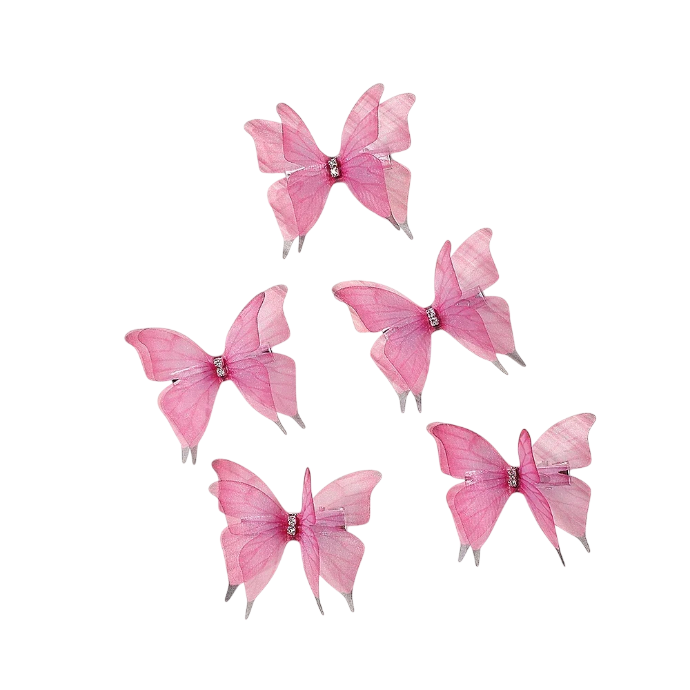 Főoldal Főoldal Ruhák és kiegészítők Női Női kiegészítők Haj kiegészítők 5 db-os pillangós hajcsat készlet Két rétegű design Háló Poliészter és ötvözet Színes hajkiegészítők