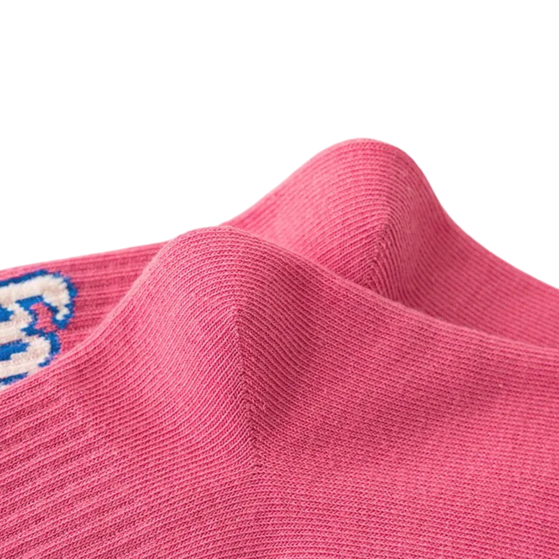 A zoknik dizájnja rózsaszín kivitelben, különböző mintákkal készült, amelyek játékos és modern hatást keltenek. A színes motívumok vidám karaktert adnak a zokniknak, és könnyen kiegészítik a gyermek öltözetét.