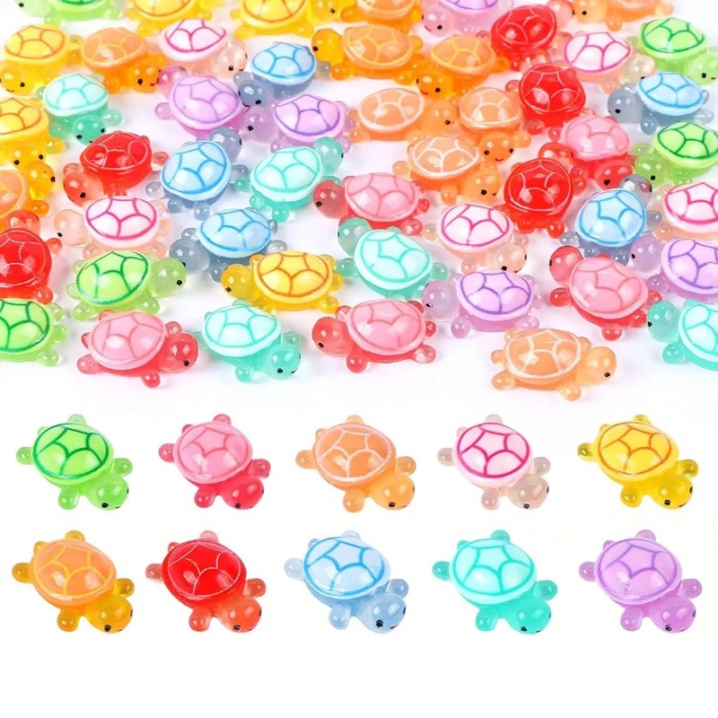 50 db mini teknős készlet gyantából Akvárium dekorációkhoz vagy DIY projektekhez Színes világító teknősök színes keverék
