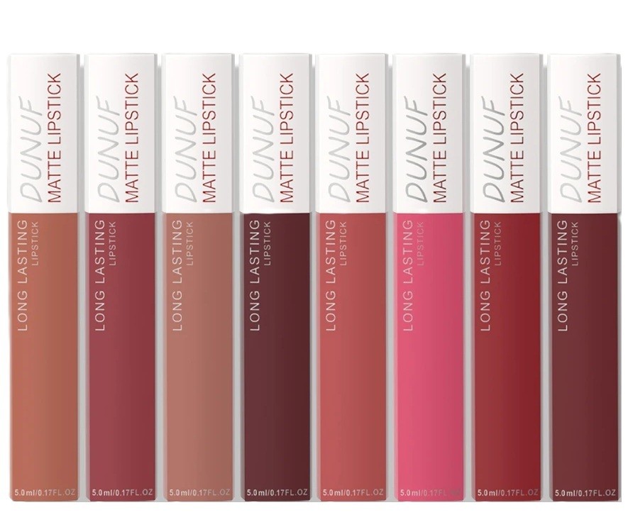 Főoldal Főoldal Egészség és szépség Ajkak Folyékony rúzsok 8 db matt rúzs készlet Hosszantartó vízálló összetétel Izzadságálló a hangsúlyos ajaksminkhez