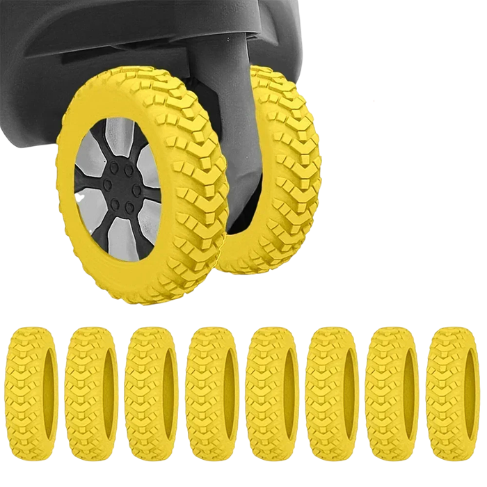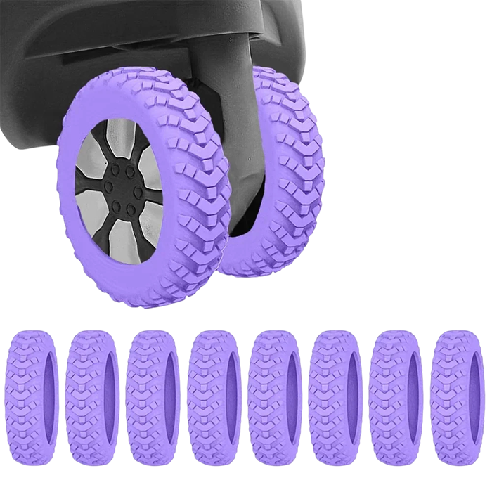 A védőburkolatok rugalmas és tartós szilikonból készültek, amely alkalmazkodik a kerekek formájához, és biztosítja a stabil rögzítést. Az anyag egyben segít elnyelni a rezgéseket, és javítja a kerekek és a felület közötti érintkezést a bőrönd mozgatása során.