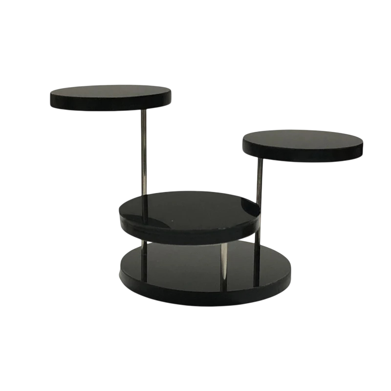 A több szintes állvány lehetővé teszi az ékszerek elrendezését több szinten, ami jobb áttekinthetőséget biztosít tároláskor. A kerek szintek helyet biztosítanak különböző típusú kiegészítők számára, és lehetővé teszik azok elválasztását szükség szerint. Az akril konstrukció egyszerű állványt hoz létre, amely alkalmas asztalon, sminkasztalon vagy polcon való elhelyezésre.