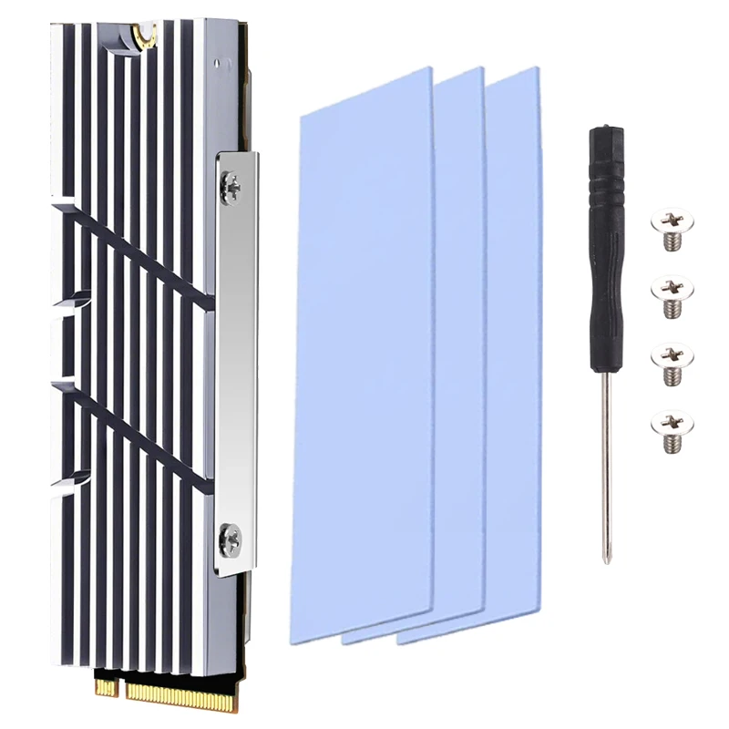 Alumínium hűtő grafikus kártyához és processzorhoz asztali PC-hez és PS5-höz 3 szilikon alátéttel, 4 csavarral és csavarhúzóval hűtőszett