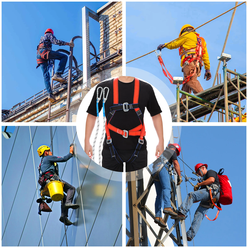 Biztonsági heveder magassági munkákhoz 2x 2m biztonsági kötelekkel és karabinerekkel Polipropilén Ötvözött acél Teherbírás 2200kg