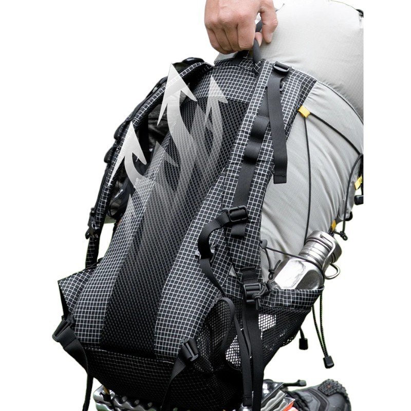A hátizsák 40D nylonból készült, szakadásgátló bevonattal, kombinálva 210D szintetikus szövettel, ami hozzájárul a könnyű súlyhoz és a jó mechanikai ellenálláshoz. A hátsó rész légáteresztő kialakítása növeli a viselési kényelmet, különösen hosszabb mozgások során. Nagy előnye a levehető hátsó panel, amely praktikus alátétként is használható. A hátizsák könnyen alkalmazkodik a különböző tevékenységekhez és a felhasználó igényeihez.