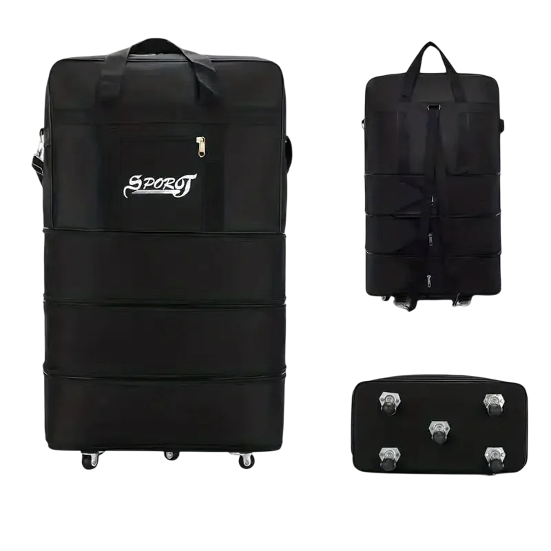 Cestovní bőrönd kerekekkel 45 x 78 x 25 cm Vízálló bőrönd oxford szövetből Fekete utazótáska nyaraláshoz és utazáshoz
