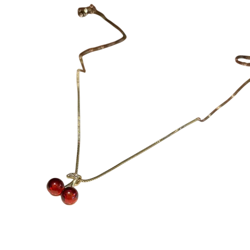 Cinkötvözet Édes piros cseresznye ékszerszett Nyaklánc és lógós fülbevaló cirkónia kövekkel Csillogó lánc Női divatékszerek