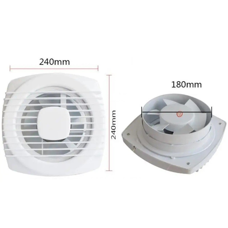 Csendes ventilátor 220V Erős elszívó ventilátor ABS műanyag Rozsdamentes keret és lapát Ablak Fal Fürdőszoba WC Konyha EU csatlakozó