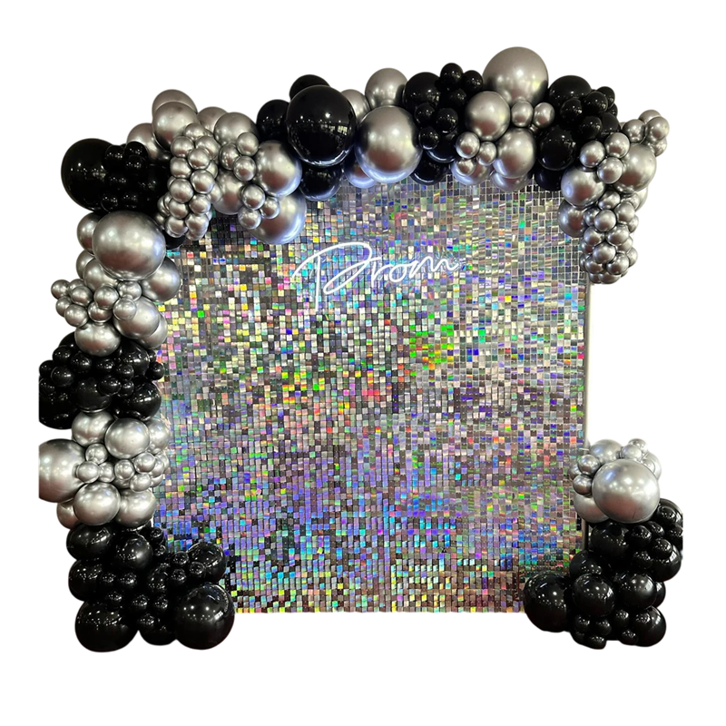 Hozzon létre egy felejthetetlen csillogó hátteret minden különleges eseményhez ezzel a szivárványos ezüst flitteres panelekből álló készlettel. A háttér teljes mérete 90×180 cm, amely elegendő helyet biztosít fotósarkokhoz, színpadhoz vagy dekorációhoz a menyasszonyi asztal mögött. A panelek tartós anyagokból készültek, amelyek nem fakulnak és nem deformálódnak, így szépek maradnak az ismételt használat során is. A szivárványos csillogás ezüst háttéren varázslatos hatást kelt, amely felélénkíti minden ünnepséget. A felszerelés gyors és egyszerű – az egyes panelek könnyen összekapcsolhatók patentkapcsolókkal, és a felszerelési tartozékok a csomag részei.