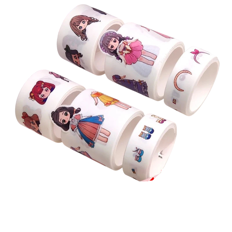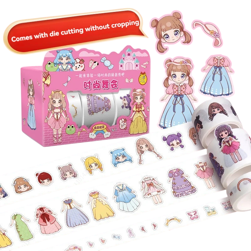 Ez a cuki ragasztószalagokkal teli doboz tökéletes kiegészítő kreatív projektekhez. Részletes matricákat tartalmaz babák, ruhák, frizurák és egyéb kiegészítők motívumaival, amelyeket különböző felületek, például papír, fal vagy más anyagok díszítésére használhat. A matricák méretei 15 x 2 mm-től 35 x 2 mm-ig terjednek, így könnyedén testre szabhatja a dekorációkat különböző igényekhez. Ezzel a készlettel nemcsak szórakozást, hanem egyedi stílust is hozhat a térbe. Ideális gyerekeknek és felnőtteknek, akik szeretik a kreatív tevékenységeket.