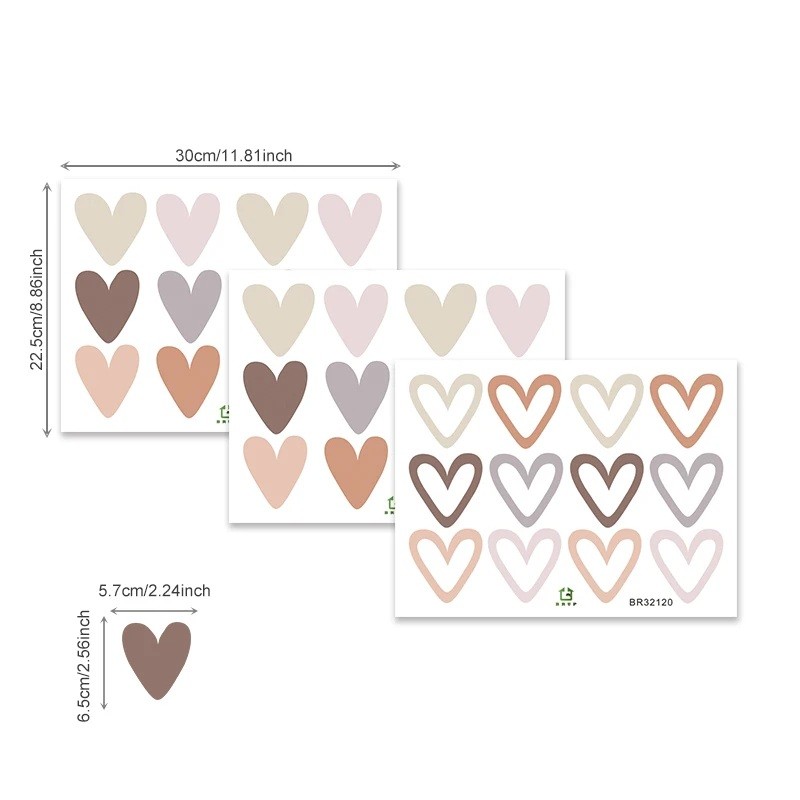 A matricák könnyen felragaszthatók falakra, ajándékcsomagokra, dobozokra, szekrényekre, tükrökre, naplókra és különféle kiegészítőkre. Rugalmasságuknak és kiváló tapadásuknak köszönhetően szilárdan rögzülnek és kifejező esztétikai hatást hoznak létre. A PVC anyag ellenáll a normál kopásnak és lehetővé teszi a könnyű karbantartást, ami hosszú élettartamot biztosít a matricáknak. A 36 darabos készlet elegendő lehetőséget kínál kisebb és nagyobb felületek díszítésére, és lehetővé teszi különböző kombinációk és kompozíciók létrehozását. A szív motívum megfelelő romantikus dekorációkhoz, tematikus ünnepségekhez, kézműves projektekhez és személyre szabott ajándékokhoz.