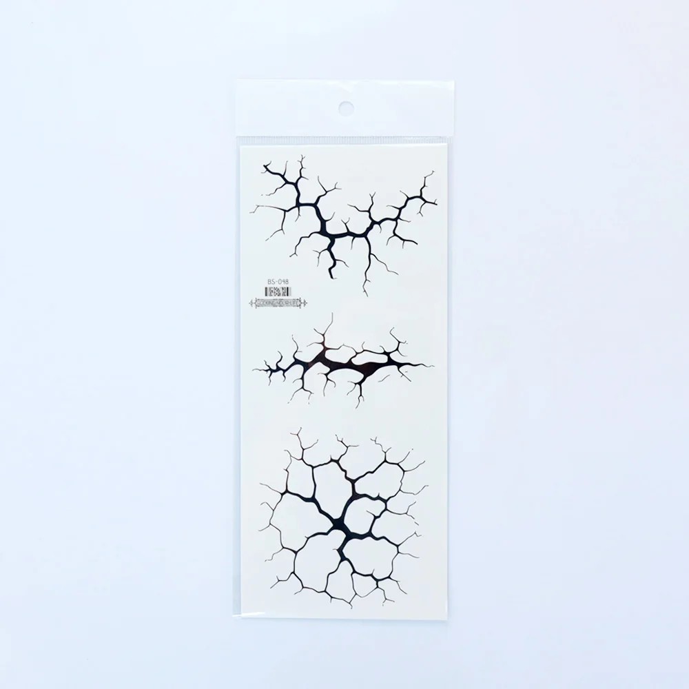 Dekoratív testmatricák készlet 2 db 10,5 x 24 cm Fekete repedés hatás ideiglenes minták az arcra, nyakra és testre Ez a dekoratív testmatrica készlet kifejező vizuális kiegészítőként szolgál tematikus sminkekhez, jelmezes eseményekhez, fotózásokhoz vagy ünnepi ünnepségekhez. A matricák valósághű repedés hatást hoznak létre a bőrön, lehetővé téve a megjelenés gyors megváltoztatását anélkül, hogy tartós tetoválásra lenne szükség. Rövid távú használatra tervezték, és kizárólag dekoratív célokra szolgálnak. A kifejező kontrasztos kivitelnek köszönhetően hatásosak az arcon, nyakon és más testrészeken is. A termék 14 éves kortól ajánlott. A matricák mérete