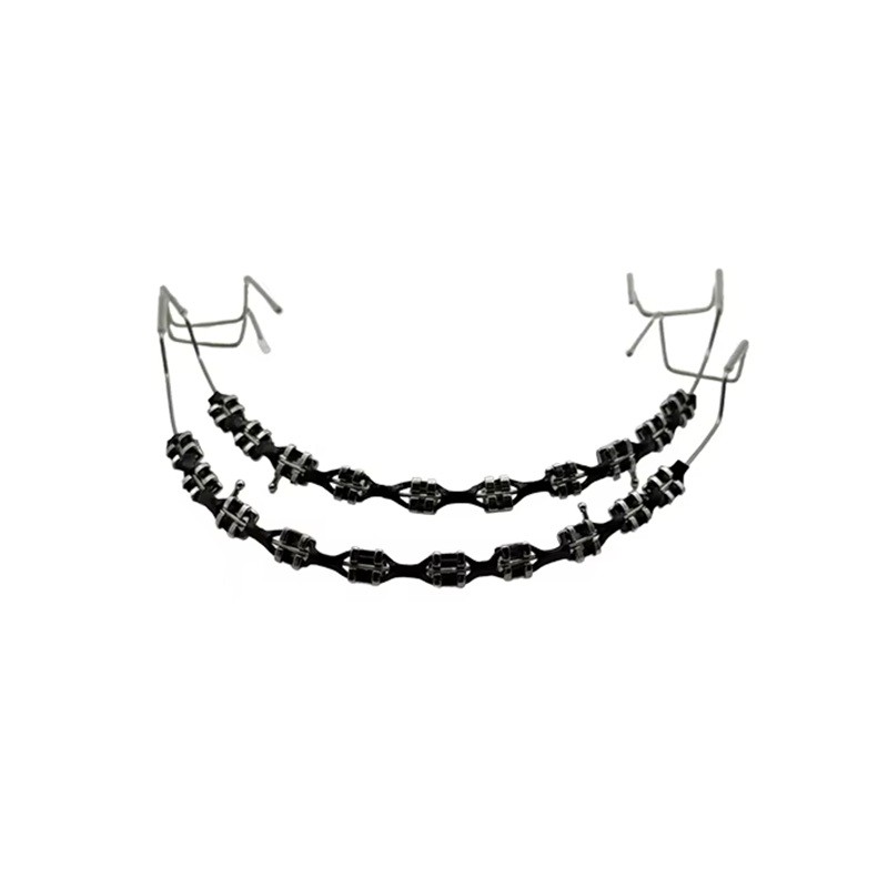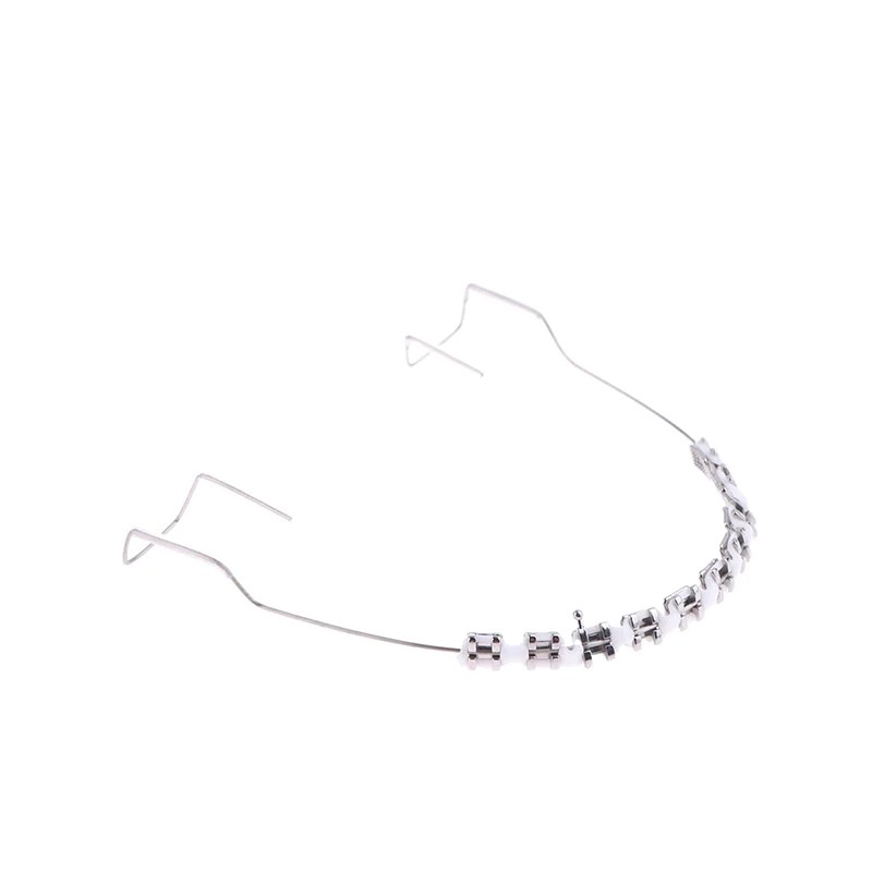 Dekoratív zubní hamis rovnátka 5 x 4,6 cm Pár rovnátka horgokkal és fémdróttal Ideiglenes zubní dísz dobozban