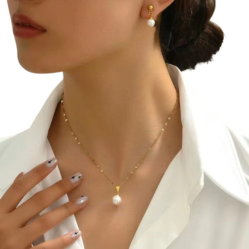 A delikát ékszerszett ideális választás nőknek és lányoknak, akik szeretik a finom eleganciát és a klasszikus stílust. A szett tartalmaz egy nyakláncot és fülbevalót, amelyek együtt harmonikus egységet alkotnak, alkalmas mindennapi viseletre, mind különleges eseményekre. Az ékszerek kiváló minőségű rozsdamentes acélból készültek, amely kiemelkedik szilárdságával, tartósságával és hosszú élettartamával. A felület tartós fényességet megőrzi, nem feketedik el, és ellenáll a mindennapi használat során fellépő kopásnak. A precíz kidolgozásnak köszönhetően az ékszerek könnyűek, kényelmesek, és különböző öltözködési stílusokhoz is illenek.