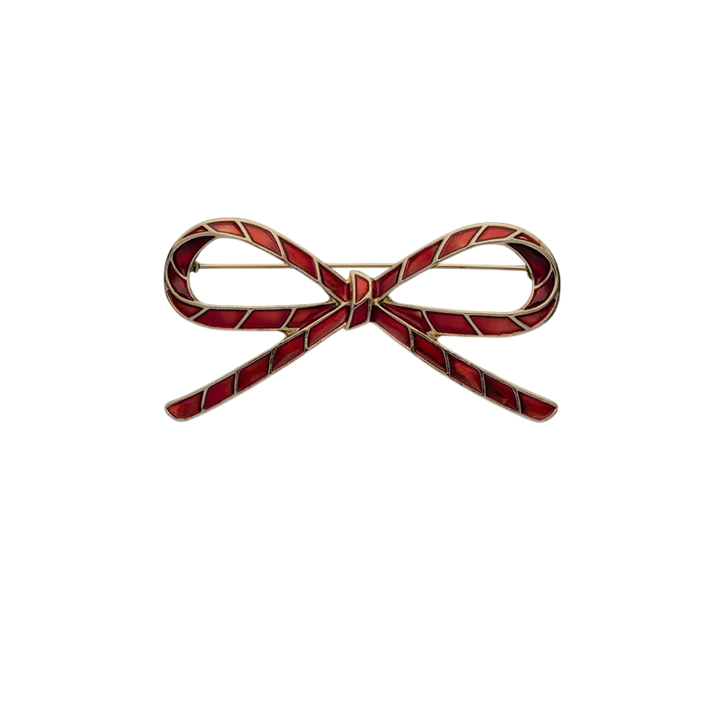 Elegáns bross piros-arany kivitelben, masni formájában, amely finom ünnepi akcentust ad az öltözékhez és kiemeli a személyes stílust. Teljes leírás