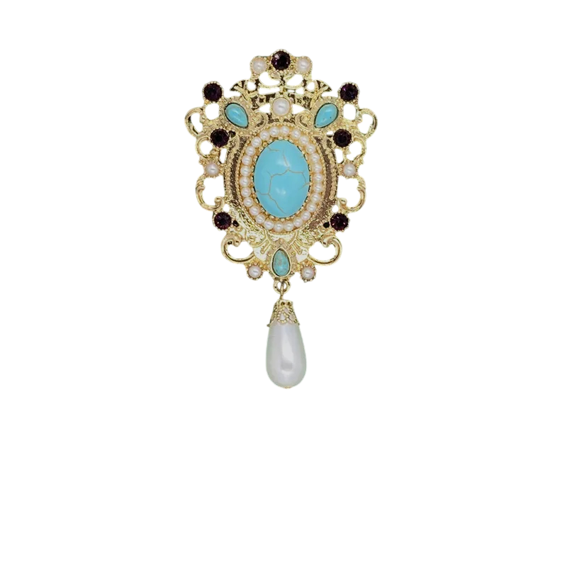 Főoldal Főoldal Ékszerek és órák Brossok Divatos királyi barokk bross Aranyozott dekoratív ékszer cinkötvözet színes kövekkel Luxusos formázott kiegészítő ruházathoz