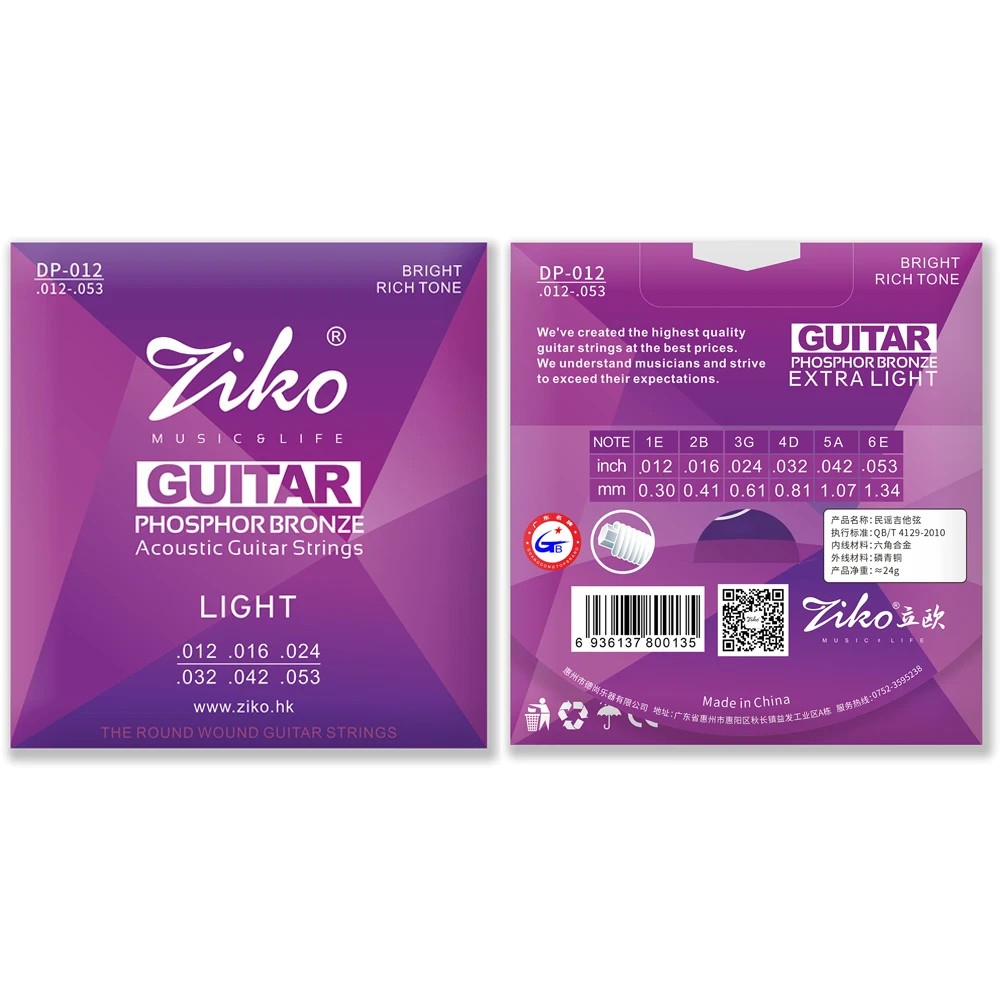 A DP-012 húrok kiváló minőségű akusztikus gitár húrok, amelyek ellenálló szénacél hatszögletű magot és foszfor-bronz ötvözetű tekercset kombinálnak. Ez az anyagkombináció hosszú élettartamot, kiváló hangolási stabilitást és meleg, természetes hangot biztosít, tiszta magasakkal és telt mélyekkel. A precíz feldolgozásnak köszönhetően a húrok megőrzik állandó hangminőségüket hosszabb használat után is.