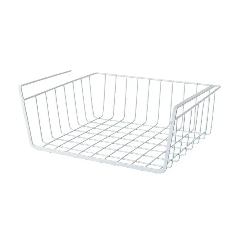 Praktikus tároló segít maximálisan kihasználni a szabad teret a szekrényben vagy a polc alatt. Az egyszerű behelyezésnek köszönhetően bármikor áthelyezhető az igények szerint. A robusztus fém kivitel garantálja a hosszú távú használatot deformációk nélkül. Ha okos megoldást keres a háztartás jobb szervezésére, ez a fali kosár funkcionális és helytakarékos választás.