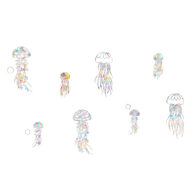 Eredeti dekoráció medúzák motívummal, amely a tenger alatti világ légkörét és finom fényhatásokat hoz az otthonába. A nagyobb 40 x 30 cm méretnek köszönhetően a lap elegendő helyet biztosít az ablakok, tükrök és egyéb sima felületek hangsúlyos díszítésére. A különleges holografikus szivárványhatás a napfény hatására lenyűgöző színes fényjátékokat teremt, amelyek a szokásos fényt varázslatos légkörre változtatják. A kiváló PVC anyag hosszú élettartamot, erős tapadást és egyúttal könnyű eltávolítást biztosít a felület sérülése nélkül.