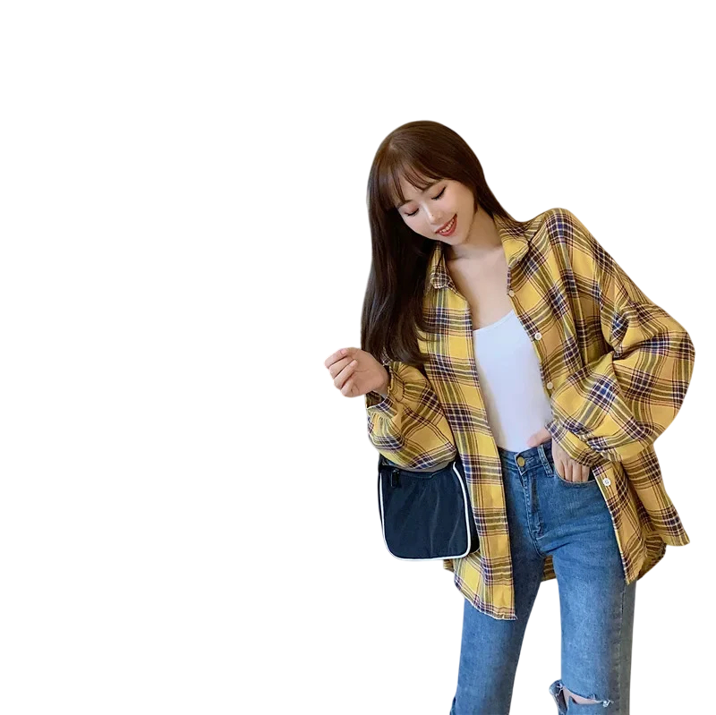 Főoldal Főoldal Ruhák és kiegészítők Női Női ingek Női kockás ingek Elegáns női kockás ing gallérral Szabadon viselhető blúz gombos záródással Stílusos poliészter top munkahelyre és szabadidőre