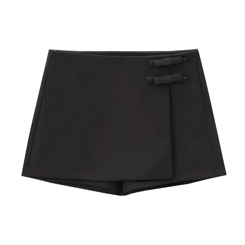 Elegáns női miniszoknya masnival. Feszes, rövid szoknya díszítéssel. Elegáns rövid szoknya városba. Munkahelyi és estélyi összeállítás.