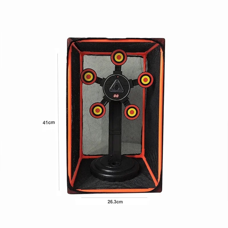 A termék kiváló minőségű konstrukcióval és tartós anyagokkal rendelkezik, amelyek ellenállnak a rendszeres használatnak játékok vagy edzések során. Nagy előnye az automatikus digitális találatszámlálás, amely megszünteti a kézi pontjegyzés szükségességét. Miután minden célt eltaláltak, az eszköz könnyen újra előkészíthető a következő játékfordulóra. A lövődoboz gyermekek és felnőttek számára egyaránt alkalmas, és támogatja a koordináció, a koncentráció és a pontosság fejlesztését. Egyszerű kezelhetősége miatt ideális a fiatalabb játékosok számára is.