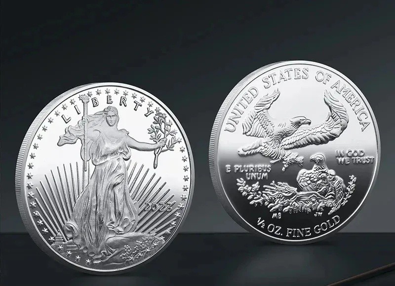 Emlékező ezüst érme Szabadság szobra 4 cm részletes dombormű új klasszikus posztmodern stílus gyűjtői dekoratív érme