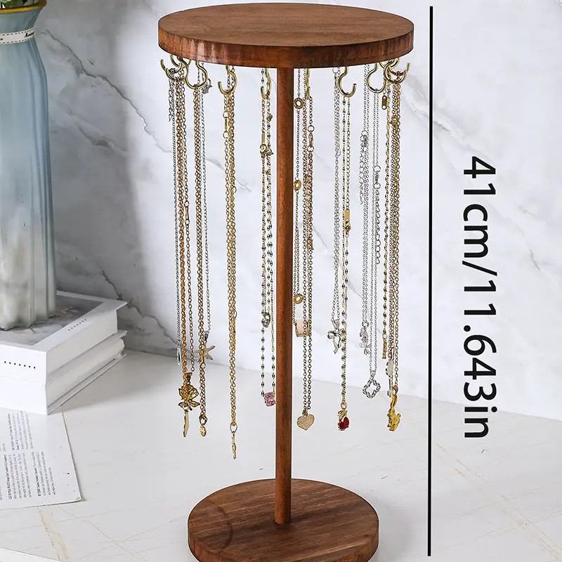 Fából készült barna nyaklánctartó állvány 41 cm Asztali ékszerorganizáló akasztókkal láncok, karkötők és nyakláncok számára