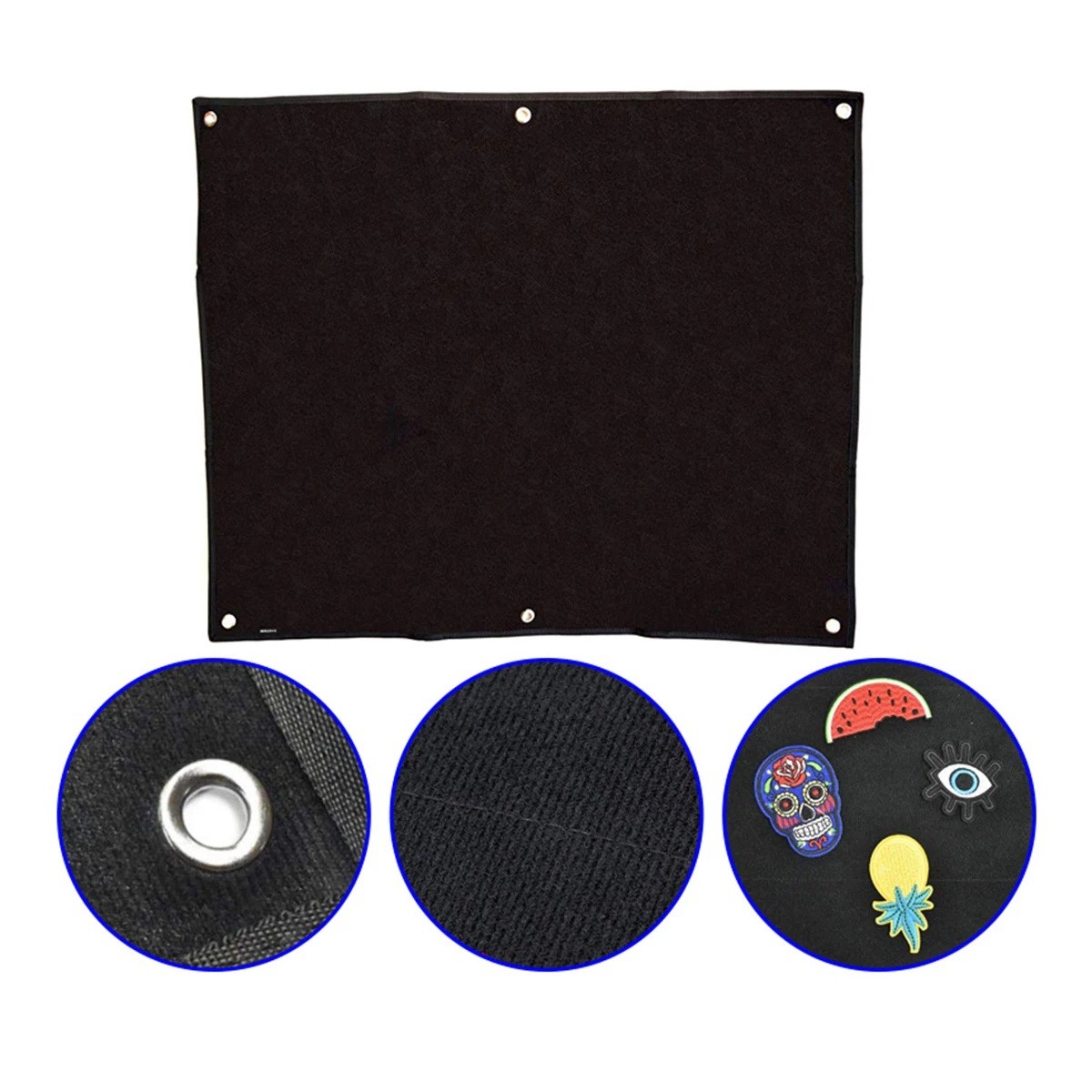 Fali nástábla kitüntetők és foltok számára 45 × 58 cm Fekete textil tábla flanel és oxford szövet falra akasztókkal