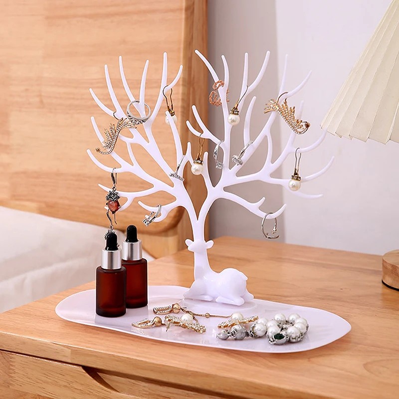 Praktikus asztali tartó karkötők és nyakláncok számára, ágakkal az ékszerek könnyű akasztásához, tartós és elegáns dizájn a lakásba. Teljes leírás