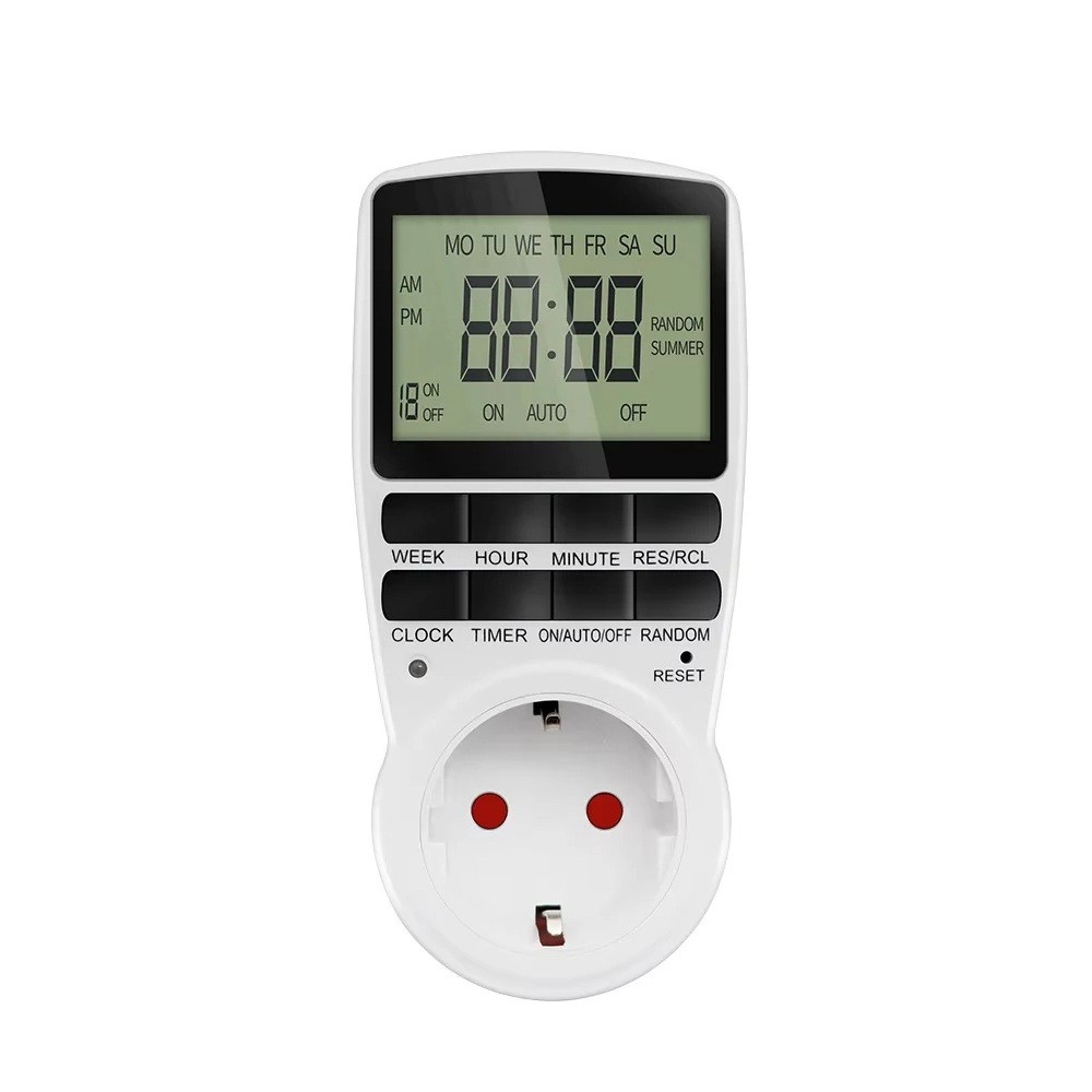 Fekete-fehér időzítő dugasz EU 11 x 6,2 cm Praktikus dugasz időzítővel a háztartás számára Ez a fekete-fehér időzítő dugasz ideális mindazok számára, akik hatékony módot keresnek háztartási eszközeik működésének automatizálására. A 11 x 6,2 cm-es kompakt méretének köszönhetően könnyen elfér bármelyik konnektorban, és kompatibilis minden olyan készülékkel, amely EU dugaszt használ. Az időzítő funkció lehetővé teszi, hogy beállítson egy konkrét időpontot az eszköz bekapcsolására vagy kikapcsolására, ami kényelmet biztosít és energiát takarít meg. A dugasz kiváló minőségű anyagokból készült, amelyek hosszú élettartamot és megbízhatóságot garantálnak.