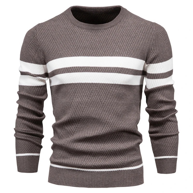 1× férfi slim pulóver garbóval, V-nyakkal és csíkokkal (választott szín és méret)