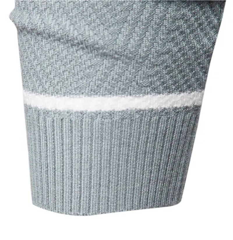Férfi hosszú ujjú pulóver, garbós Slim, V-nyakú, egyszínű, 3 fehér csíkkal, meleg, poliészter, pamut, különböző színekben
