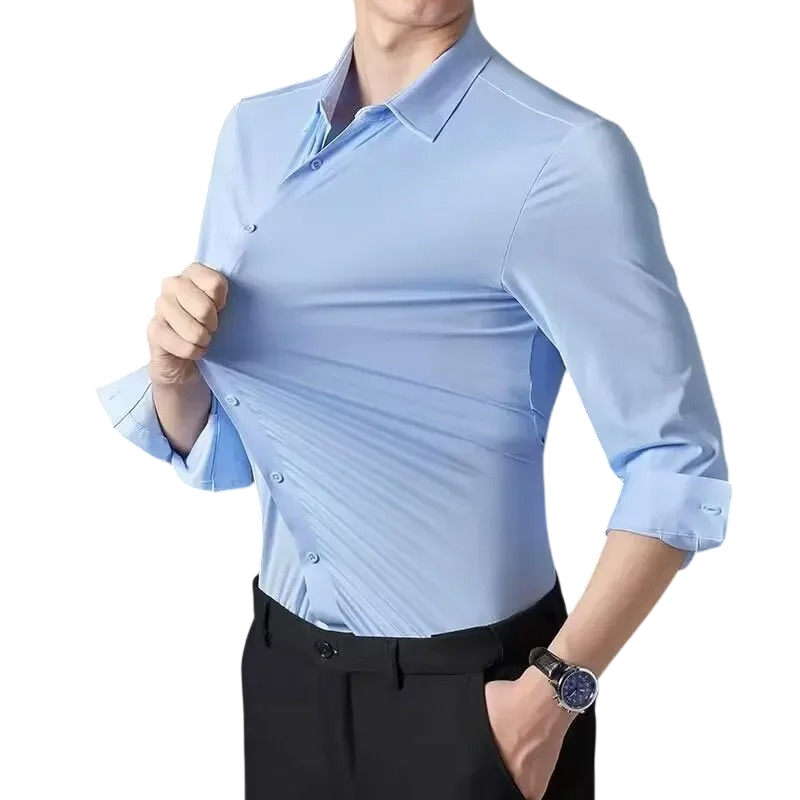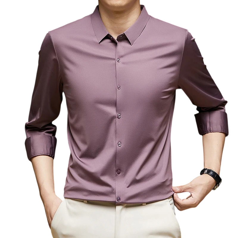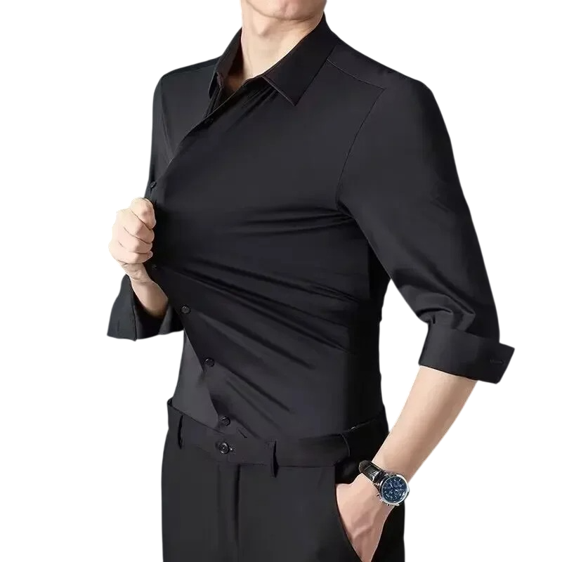 Egyszínű férfi ing hosszú ujjú és V-kivágással rugalmas anyagot, kényelmet és univerzális stílust kínál a mindennapokra. Teljes leírás