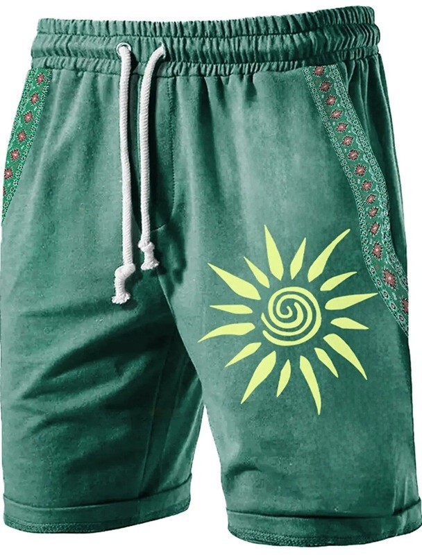 Férfi nyári légáteresztő rövidnadrág napmintával Könnyű anyag Kényelmes fazon Húzózsinórral Ideális forró napokra Hétköznapi viselet