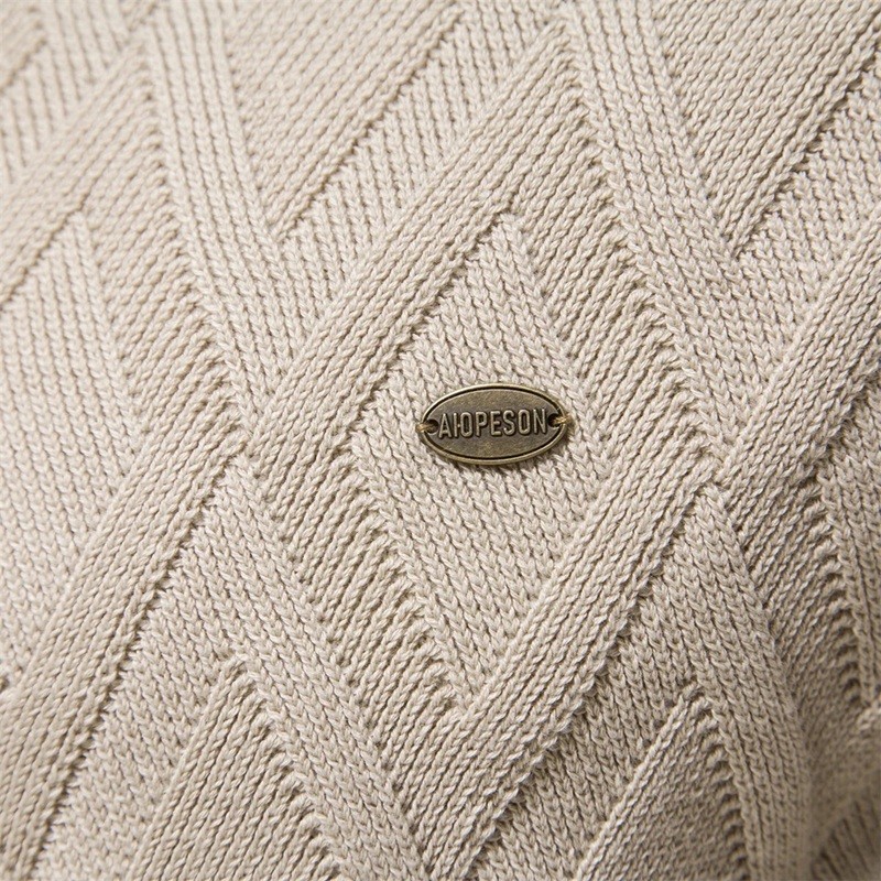Férfi pamut pulóver hosszú ujjakkal és O nyakkivágással Egyszínű kötött pulóver Elegáns szabadidő divat Őszi és téli ruházat