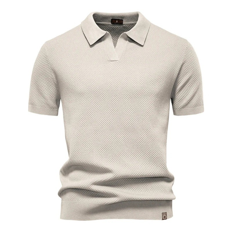 Férfi póló rövid ujjú gallérral Egyszínű elegáns póló poliészterből és viszkózból a mindennapi viselethez