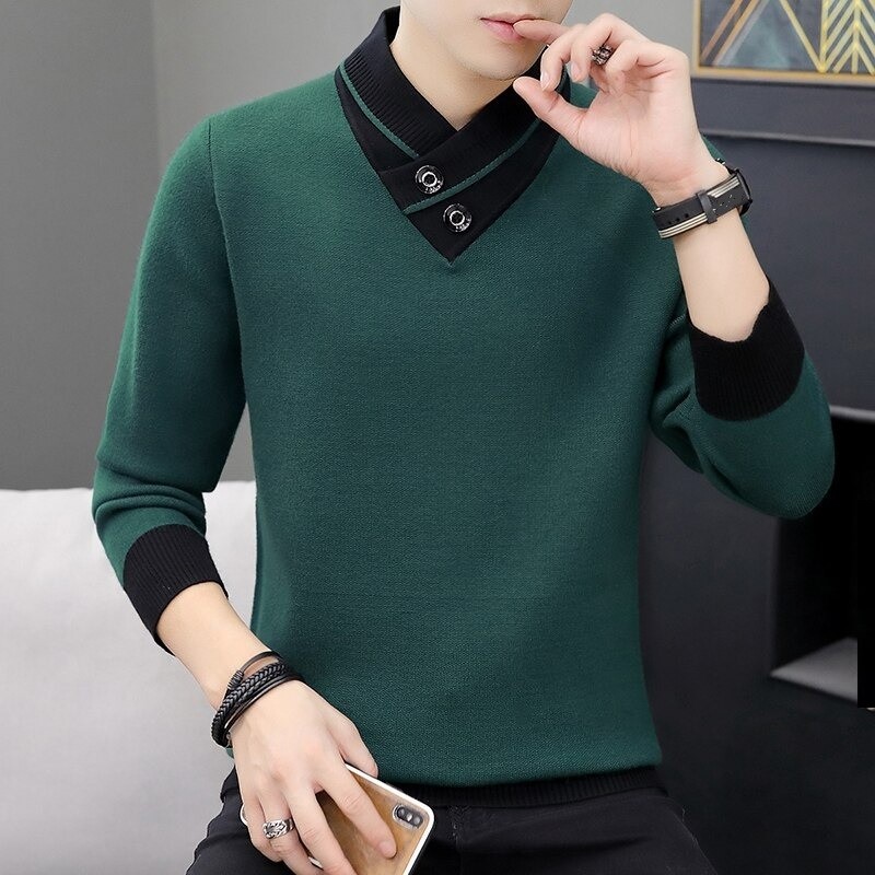 Férfi pulóver gallérral