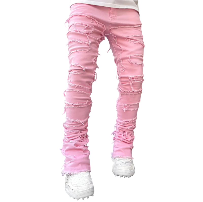 Férfi szakadt egyszínű farmernadrág zsebekkel, farmer, modern stílus mindennapi viselethez
