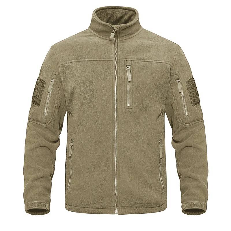 Férfi taktikai kültéri polárdzseki több cipzáras zsebbel, magas gallérral, sportdzseki, szélálló túraruházat